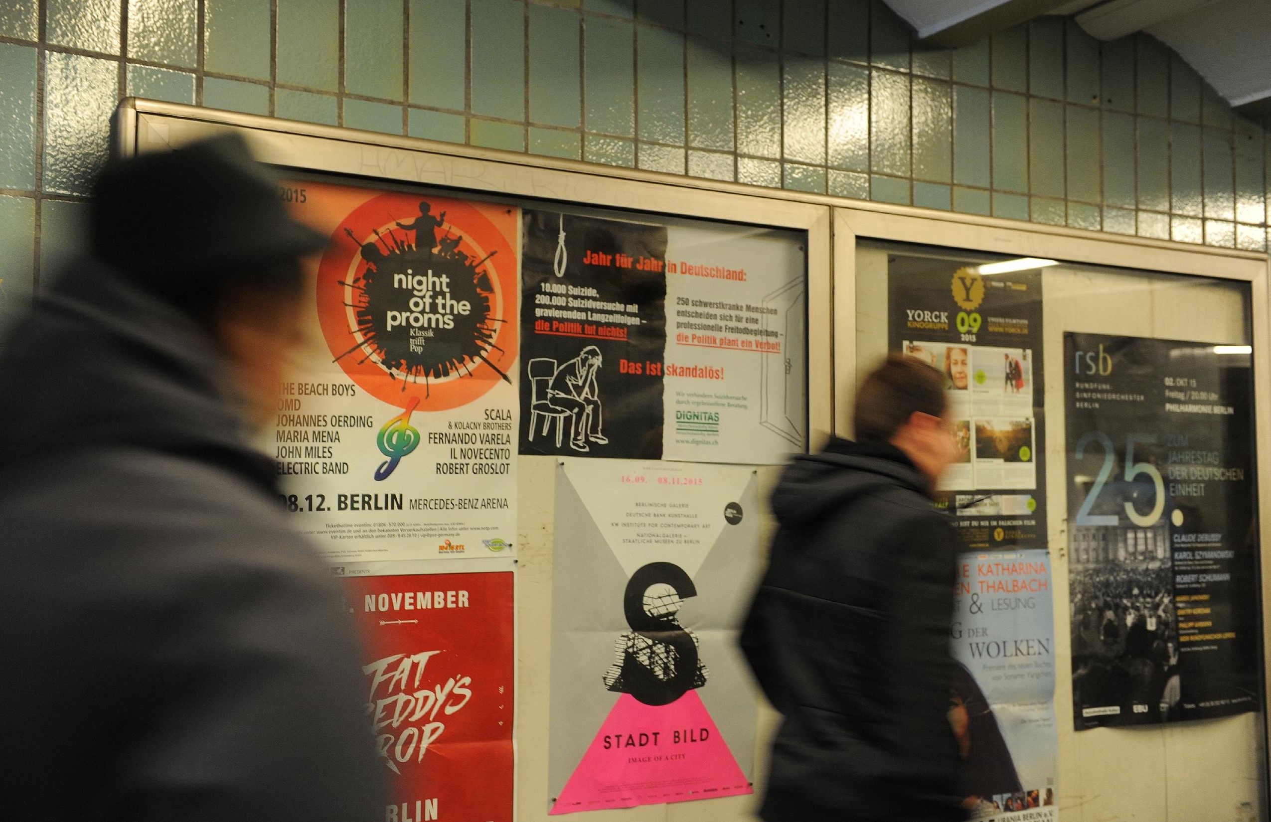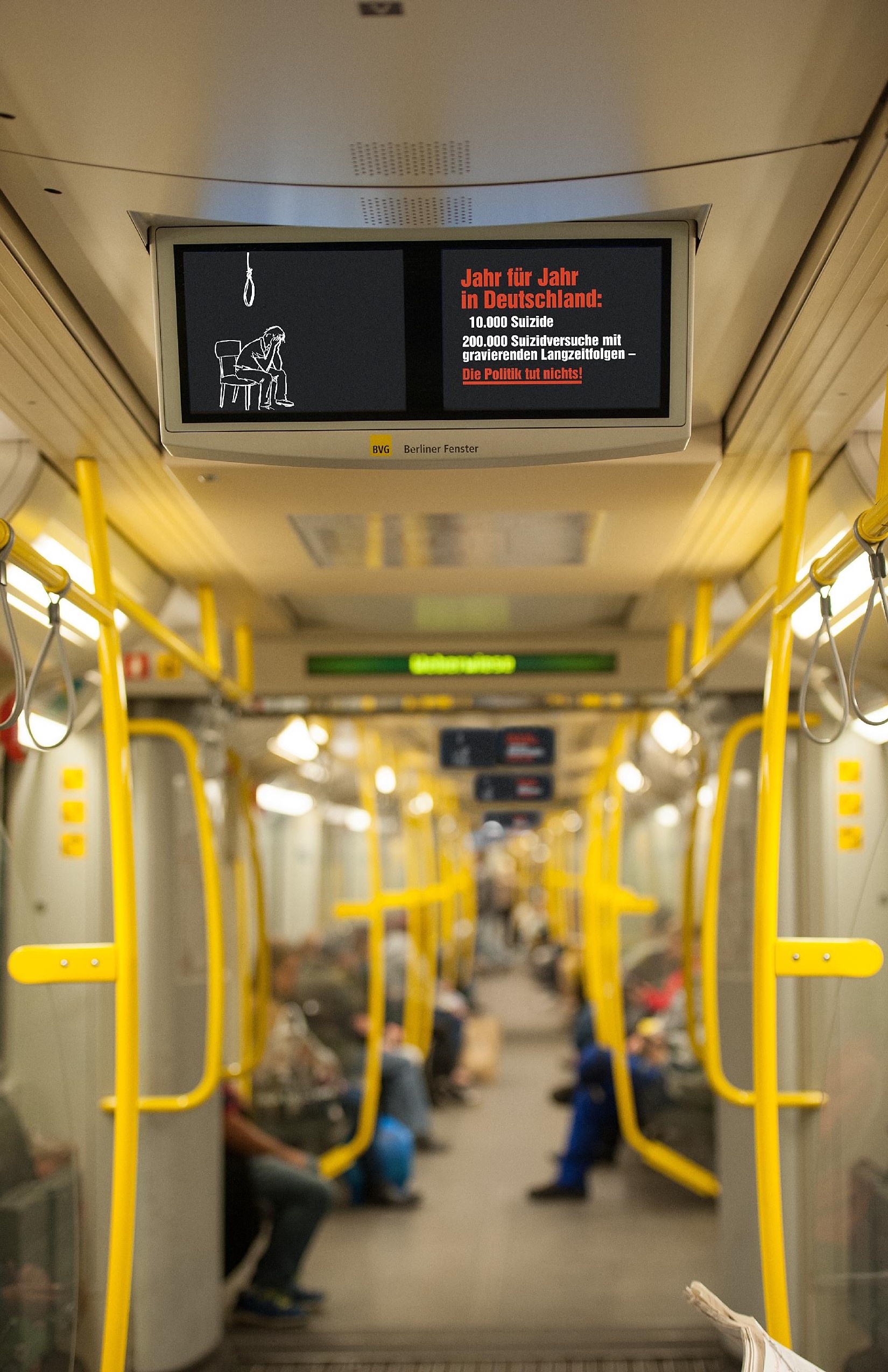 Film Dignitas-Kampagne im Berliner Fenster der U-Bahn Berlin